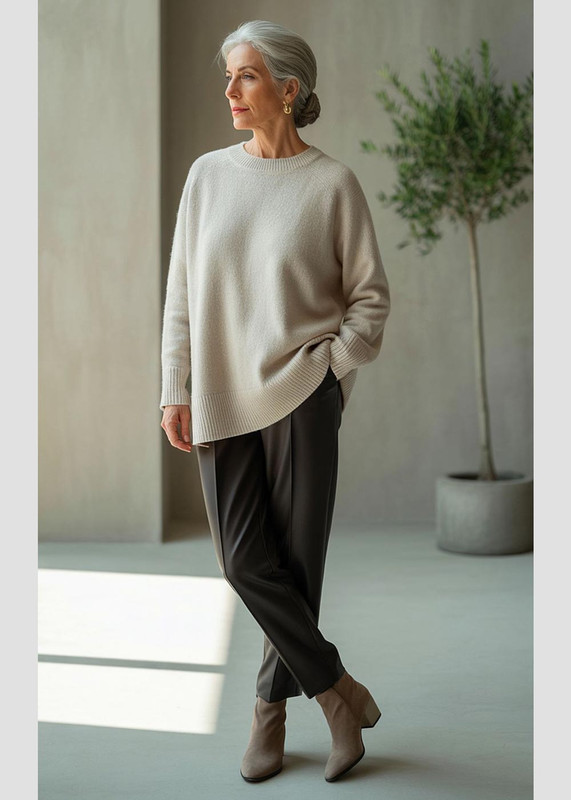 Кашемировый джемпер выходит за рамки базового элемента гардероба, становясь универсальной основой для разнообразных образов. Его мягкость и элегантность позволяют экспериментировать с комбинациями, адаптируя под разные сценарии: от расслабленного дня в городе до полуформального ужина. Мы разберем ключевые стили, опираясь на тренды 2024–2025 годов, и покажем, как избежать типичных ошибок, таких как перегрузка аксессуарами или несоответствие пропорций. Подход будет ориентирован на практику: с примерами, которые легко повторить, учитывая тип фигуры и сезонные нюансы. Начнем с casual-стиля, где кашемир сияет в повседневности. Классический вариант сочетание с джинсами или чиносами: выбирайте прямой крой для баланса объемов. Для женщин подойдет oversize-джемпер с узкими брюками, создавая силуэтперевернутый треугольник, который визуально удлиняет ноги. Мужчинам рекомендуется V-образный вырез с рубашкой внутри для многослойности. Добавьте минималистичные кеды или лоферы это подчеркнет натуральность ткани. Риск здесь в том, чтобы не сделать образ слишкомдомашним: избегайте растянутых моделей, которые выглядят небрежно.