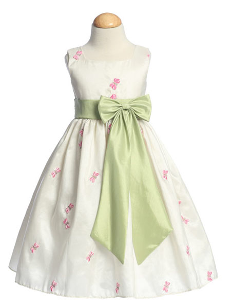 Платье дополнено атласным поясом, завязывающимся на большой, пышный бант.