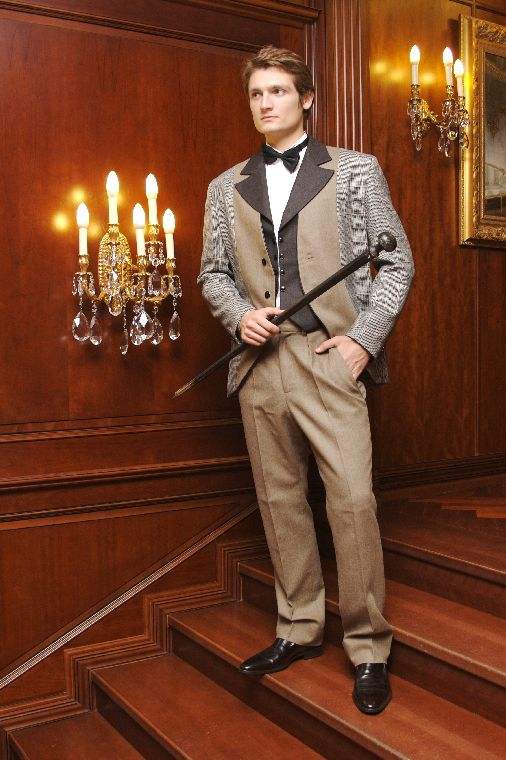 Стильная коллекция мужской одежды от дизайнера Веры Костюриной выдержана в старых классических традициях, когда были так модны твидовые костюмы в клетку.