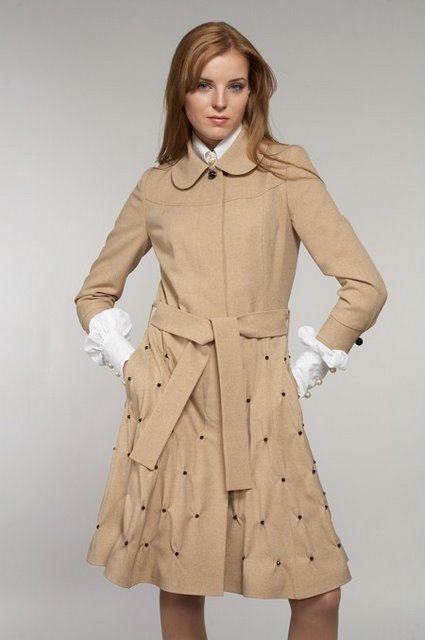Платье (пальто) бежевое, расшитое бусинами, дизайн-студия Екатерины Смолиной.
