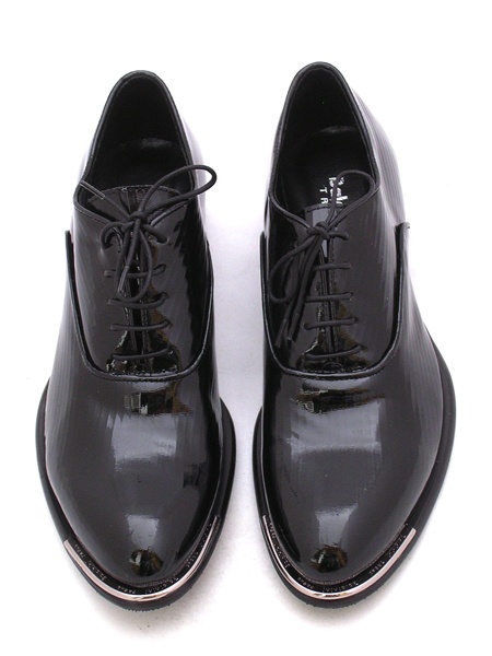 Классические ботинки изготовлены из лаковой кожи с применением лазерной обработки.
