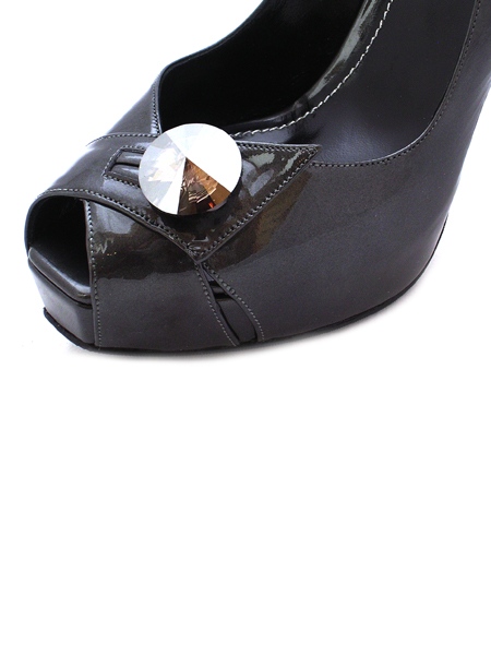 Чёрные изысканные босоножки из натуральной лаковой кожи производства Италии. Стразы Swarowsky дымчатого цвета дополняют эти элегантные босоножки. Подкладка выполнена из телячьей кожи, подошва из натуральной кожи с резиновой профилактикой. Модный высокий каблук высотой 12,5 см и платформа 2,5 см. За счёт платформы высота каблука получается 10 см. Удобная колодка подходит на стандартную полноту стопы. В комплекте прилагаются запасные набойки. Босоножки идут "размер в размер".