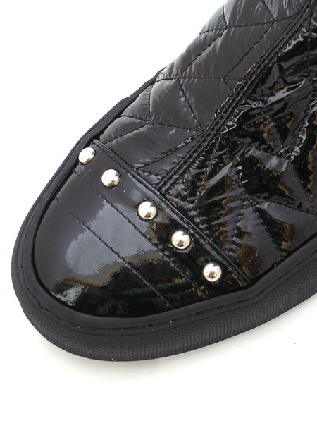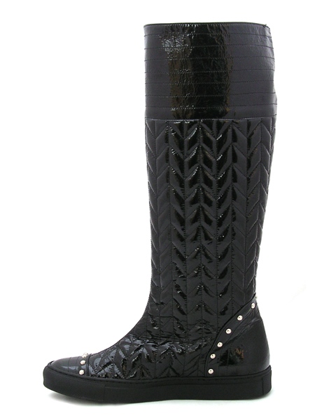 Голенище сделано из простеганной эластичной кожи стрейч, без молнии.