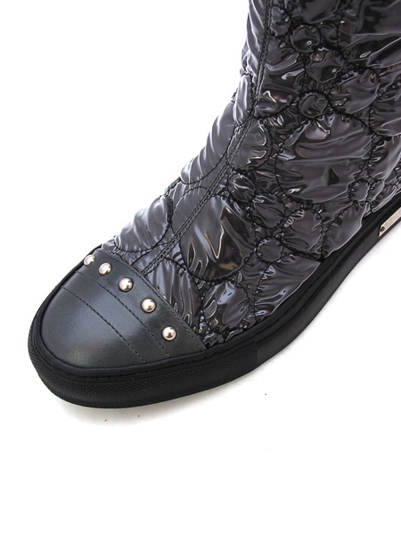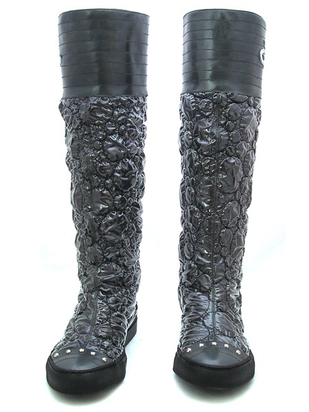 Материал верха: натуральная кожа, скомбинированная с водонепроницаемым синтетическим материалом серого цвета ( антрацит), простеганным в виде пузырьков. Подкладка нат. кожа.