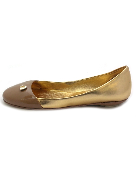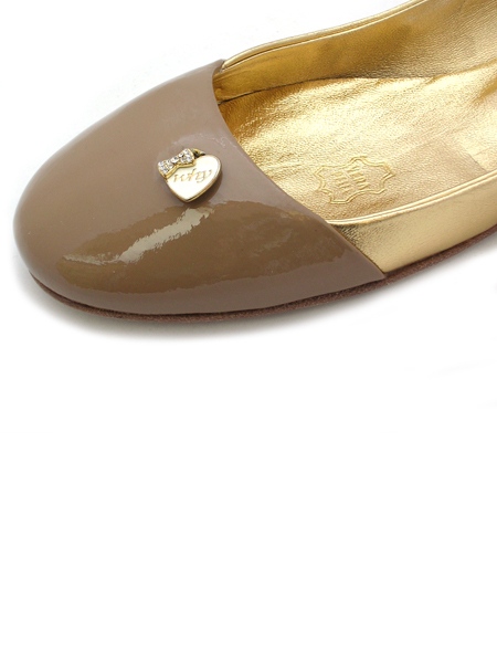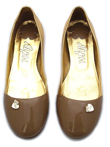 Очаровательные балетки из натуральной лаковой кожи цвета карамели, скомбинированной с золотой.