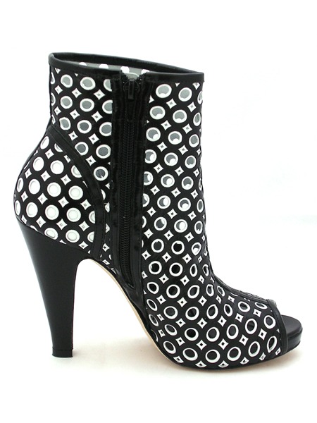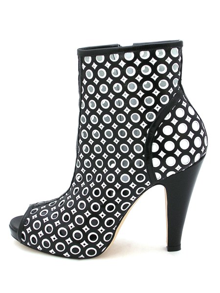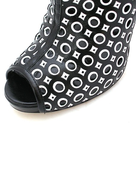 Черно-белые ботильоны с отрытым мысом и перфорацией в виде кружочков.