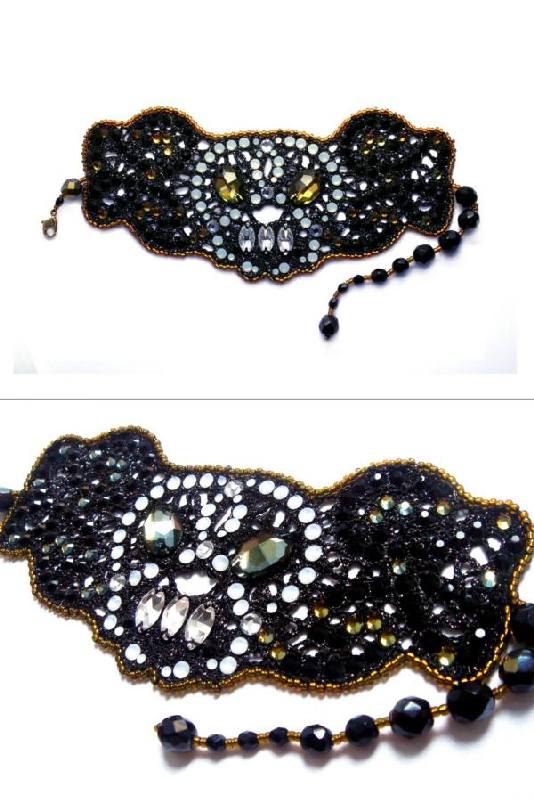 Материалами за основу служит – полиэстер (Германия), соединяющая тонкая металлическая нить - металик мулинэ (Франция), бисер (Япония), стразы, кристалл Swarovski (Австрия).