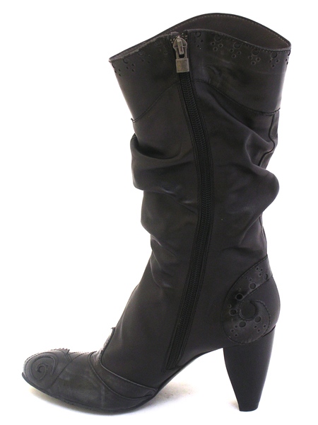 Эффектные и оригинальные осенние сапоги на устойчивом каблуке, с округлым вытянутым мысом, впорной колодкой, очень удобные.
