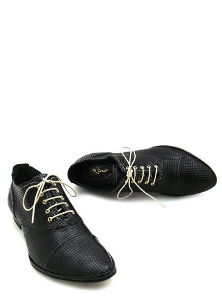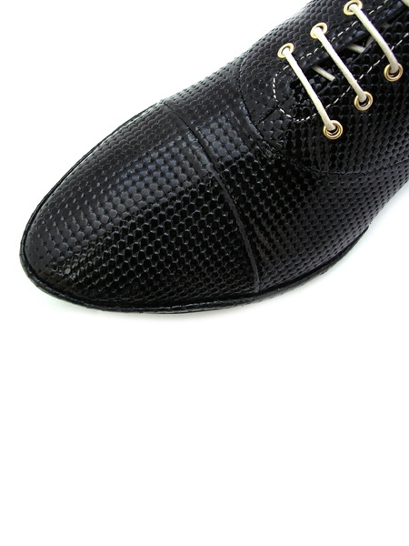 Материал - верх: натуральная лаковая кожа классического черного цвета с имитацией под кольчугу, подкладка из натуральной кожи. Каблук 1,5 см.