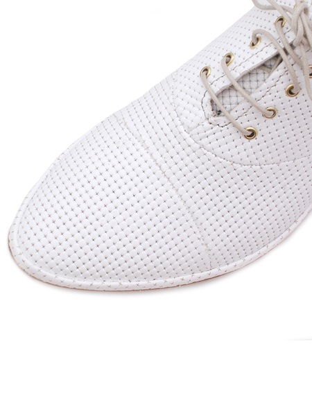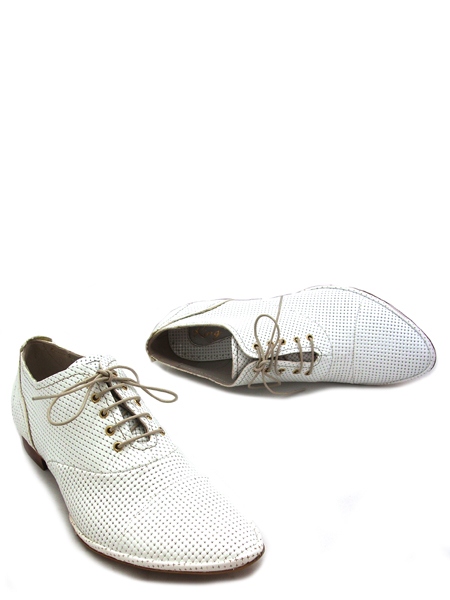 Материал - верх: натуральная лаковая кожа классического молочного цвета с имитацией под кольчугу, подкладка из натуральной кожи. Каблук 1,5 см.