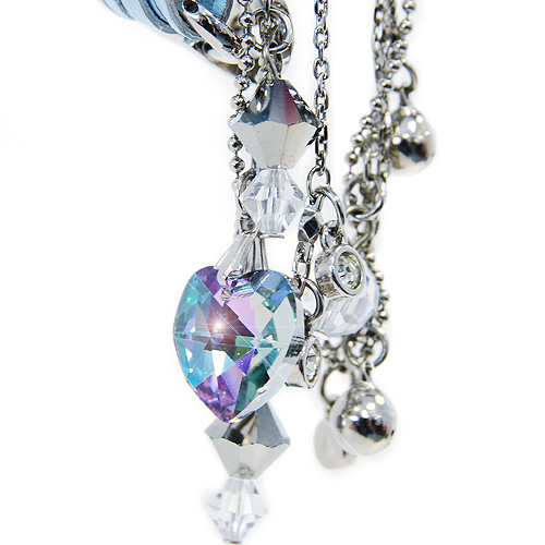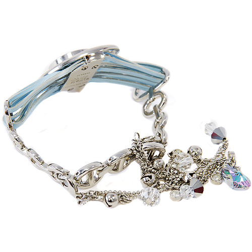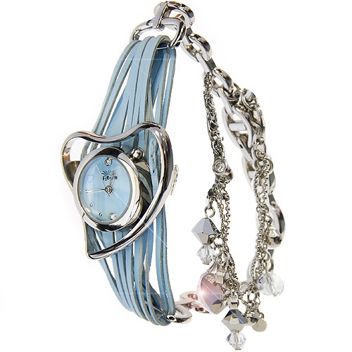 Циферблат выполнен из голубого перламутра и инкрустирован стразами.