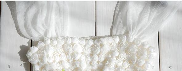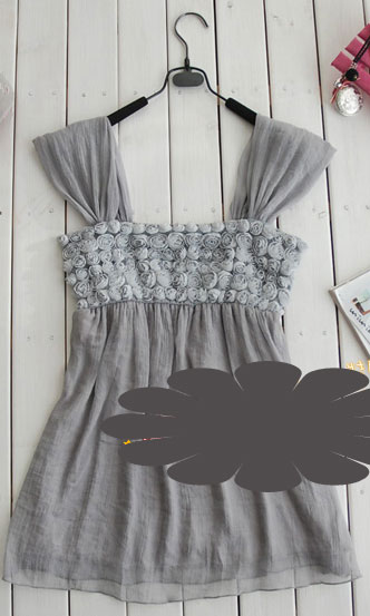 Изюминка модели - отделка лифа маленькими, разного размера розочками из ткани - выполнены из ювелирно пришитой, тонкой, поставленной вертикально тканевой ленты с вырезаными лепестками.