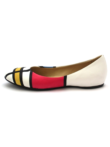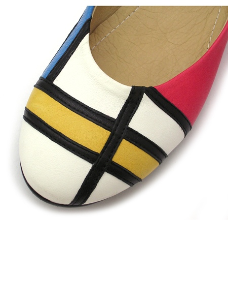 Стильные балетки эффектны благодаря яркому геометрическому рисунку в стиле 70х. Мыс балеток округлый, колодка на стандартную полноту. Идеально подойдут к любому цветовому наряду.