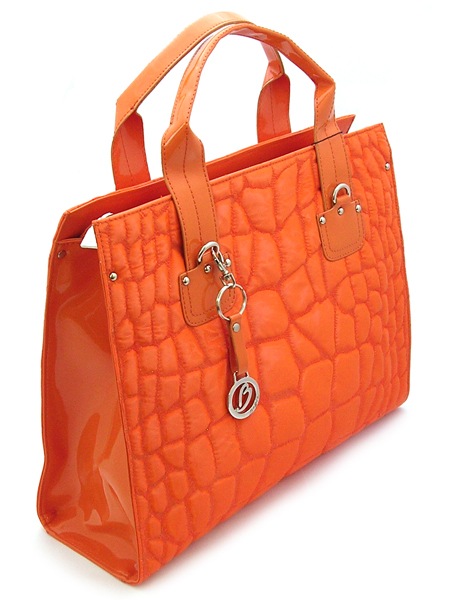 Ручки, ремешок и боковые стенки сумки - из лаковой кожи.