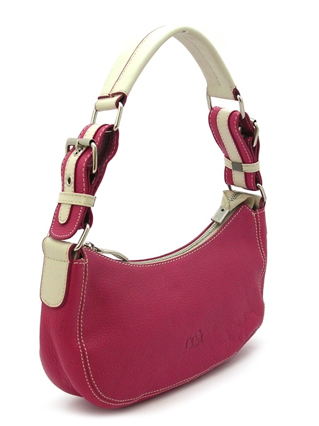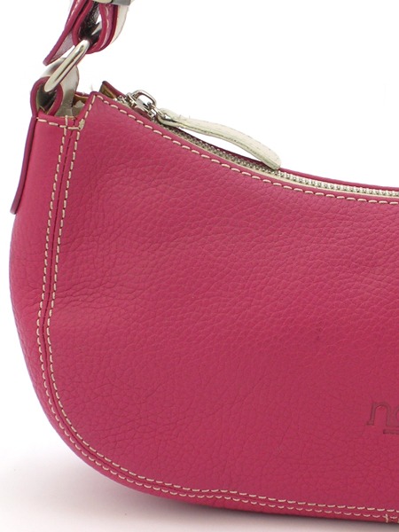 Маленькая женская сумка малинового цвета с одной ручкой.
