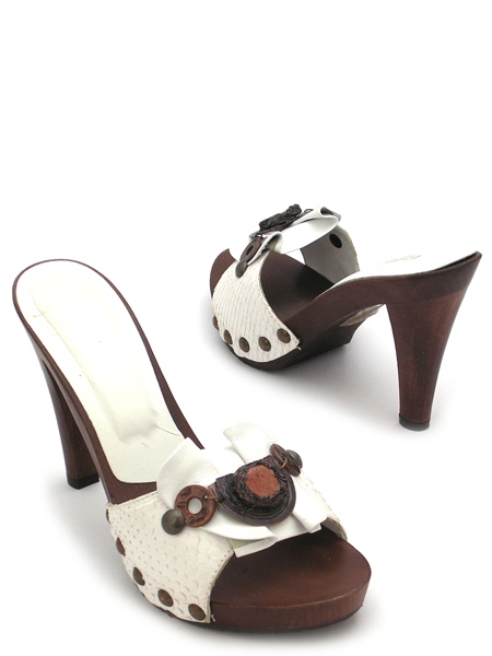 Всегда модные и сексуальные сабо из натуральной кожи питона на деревянной подошве.