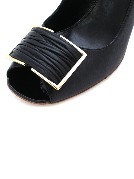Изящные и женственные туфли на прочном каблуке. Колодка очень удобная, кожа мягкая, что дает ноге легкость и комфортность ношения. Туфли выполнены в стиле 70-х годов с открытым мысом и квадратной пряжкой. Модель универсальна - одинаково отлично подойдет и под офисный костюм, и под вечернее платье.