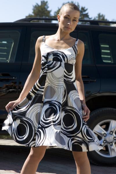 Сарафан с завышенной линией талии и широкой расклешеной юбкой.
