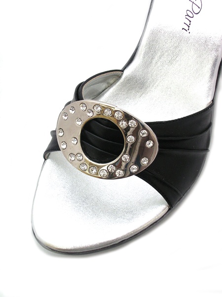 Аккуратные и стильные сабо на танкетке. Верх украшен серебряной пряжкой со стразами.