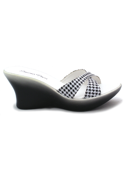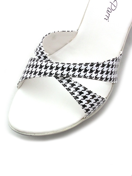Летние и мягкие сабо на удобной устойчивой танкетке. Перекрещивающиеся ремешки декорированы черно-белой клеткой в виде звездочек. Отличный вариант для повседневного ношения.