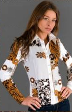 Блуза слегка приталенная, застегивается на удобные кнопки.
