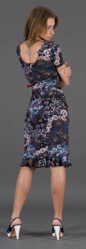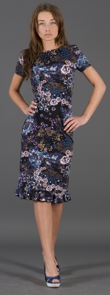 Элегантное платье с цветочным рисунком и отделкой стразами.
