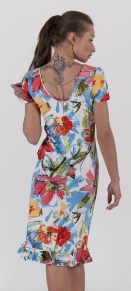 Платье представлено в двух цветовых вариациях: строгой серо-коричневой гамме и яркой летней.