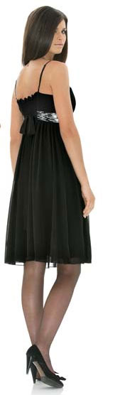 Платье с завышенной линией талии, с отделкой из черный пайеток по лифу и талии.