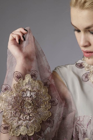 Верхняя накидка-эксклюзивная многослойная вышивка гладью, бисером, с элементами золотого шитья.