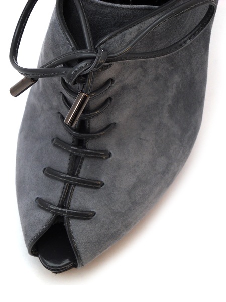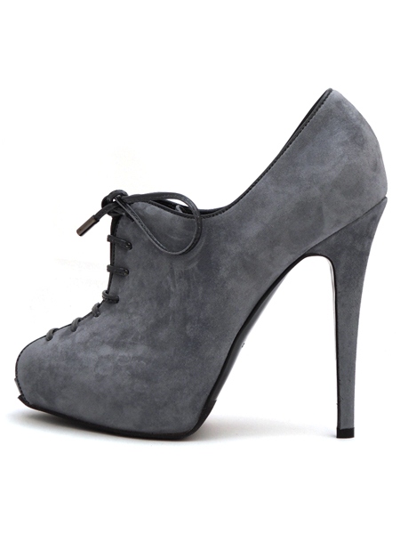 Ботильоны из нежной серой замши со шнуровкой на небольшой платформе.