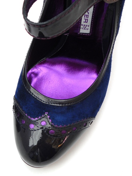 Материал верха: натуральная замша синего цвета, лаковая кожа черного цвета.