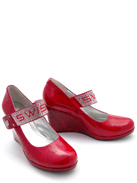 Удобная танкетка высотой 8 см и эластичная пряжка, декорированная стразами с фирменным логотипом делают эту модель удобной и стильной.