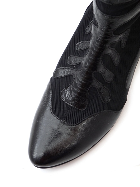 Оригинальный узор создан комбинацией черной кожи и тонкого эластичного материала (сеточка).