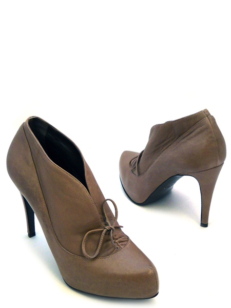Ботильоны из мягкой телячьей кожи с глубоким вырезом, украшенным тонким шнурком.