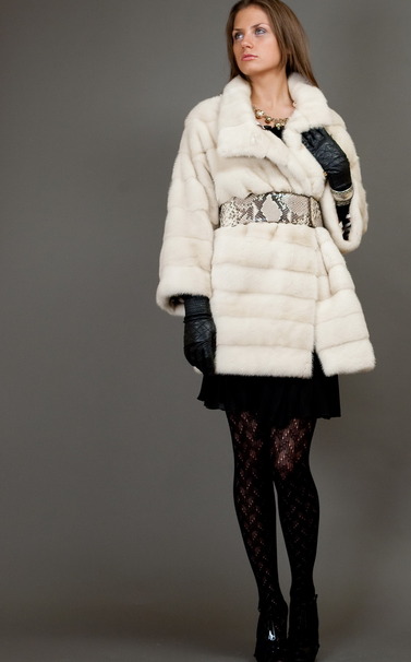 Норковая шуба натурального оттенка Жемчужина.