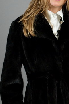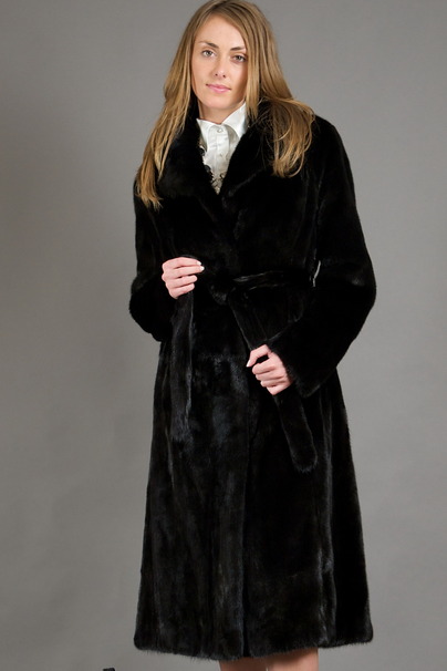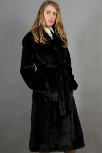 Шуба с меховым поясом. Английский воротник и разрез сзади делают эту модель шубы подходящей для любой фигуры.