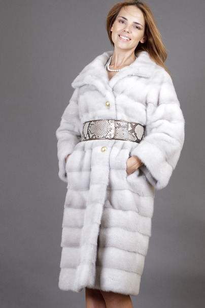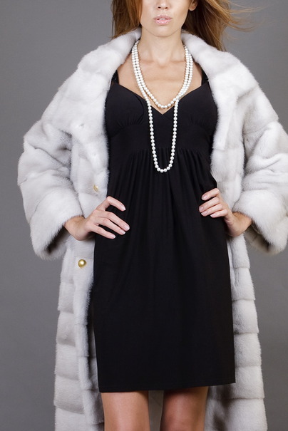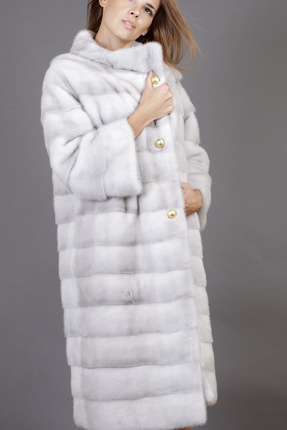 Норковая шуба-пальто Prado в духе 60-х годов из роскошнейшей норки VIOLET, благородного голубовато-серебристого цвета.