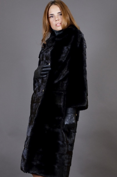 Роскошная норковая шуба представительного черного цвета из норки VELOURE.
