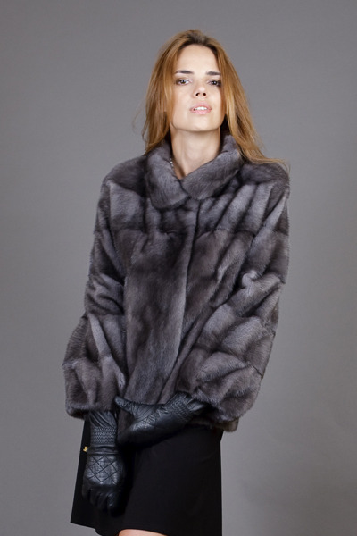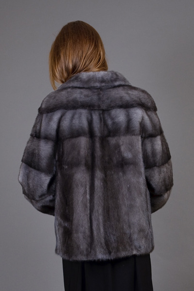 Слегка укороченная эксклюзивная модель JENNY из роскошной голубой норки BLUE IRIS.