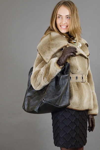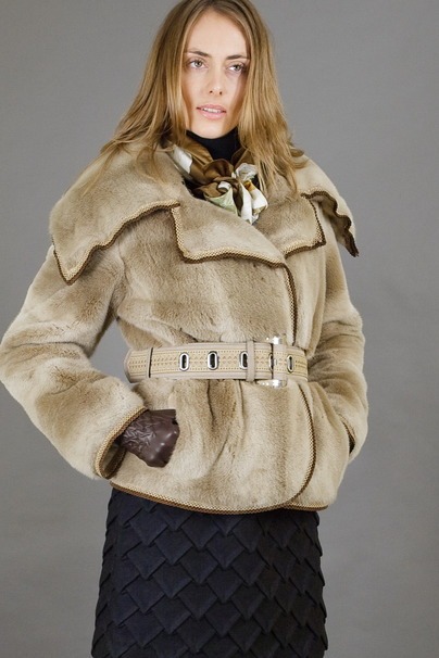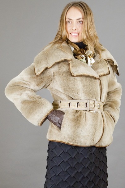 Укороченная норковая шубка-автоледи с большим отложным воротником.