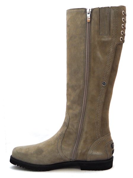 Материал верха: натуральная замша цвет мокрого песка (серо-бежового), подкладка и стелька - натуральная кожа. Голенище высотой 36см, сбоку молния.