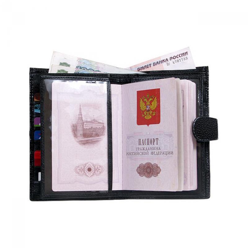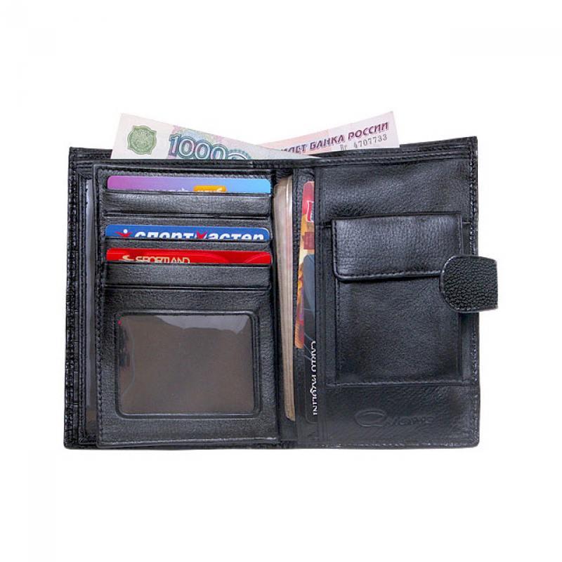 Красивое портмоне из кожи ската черного цвета для делового человека.