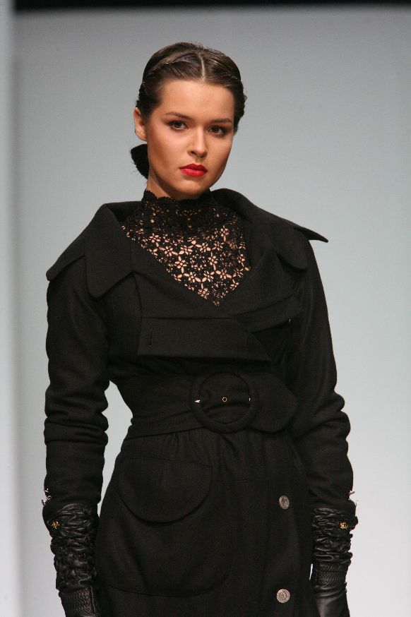Эту модель рекомендуется носить с удлиненными черными перчатками и высокими сапогами.
