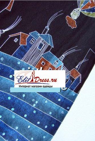 Туника из шерсти (смесовая ткань), низ украшен редкими пайетками, спереди интересный принт "Воздушный шар над городом".