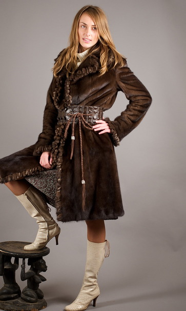 Модель Conde из коллекции 2008-2009 года. Стильная и оригинальная шуба из скандинавской норки. Теплый ореховый оттенок Demi-buff и двойной английский воротник добавляют особый уют. Изумительный фасон – приталенный силуэт идеально подчеркивает вес достоинства вашей безупречной фигуры. Пластины, самочка. Край шубы оригинально декорирован четырехслойной норковой бахромой. Шуба дополнена аккуратным меховым поясом.