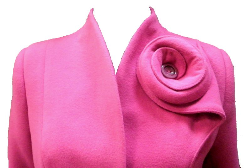 Изумительно нежное, оригинальное весенне розовое пальто из качественного кашемира. Интересное дизайнерское решение - пальто украшено цветком, происходящим из кокетки.