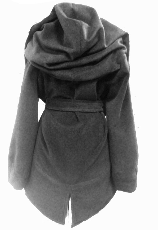 Пальто с модным в сезоне весна 2010 большим капюшоном, спадающим на плечи и переходящим в оригинальную отделку полочек.