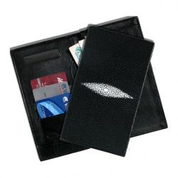 Мужское портмоне черного цвета из кожи ската позволит дополнить образ успешного человека.