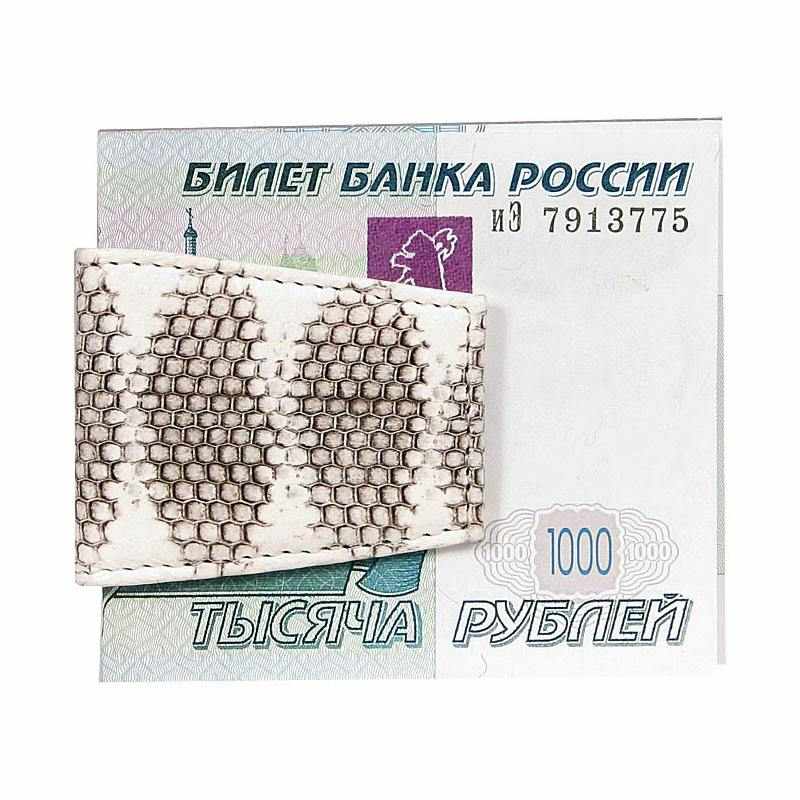 Зажим для денег из натуральной кожи змеи белого цвета с натуральным рисунком - недорогой и стильный подарок как женщине, так и мужчине.