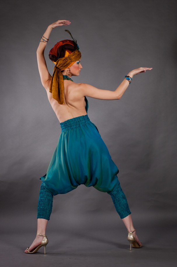 Двухслойный комбинезон в восточном стиле выполнен из шифона+атлас-шелка. Открытая спина делает модель притягательно женственной и обольстительной. Лиф модели заложен мягкими складками драпировки. Линию талии подчеркивает широкий пояс из тафты цвета морской воды. Лиф переходит в модные брюки афгани длиной чуть ниже икры. Внизу комбинезон завершают широкие манжеты из тафты цвета морской волны. Этот комбинезон, словно взятый из восточных сказок, наверняка придется по вкусу и завзятым тусовщицам, и любителям фитнеса, и поклонникам йоги. Комбинезон одинаково хорошо будет смотреться как на стройных девушках, так и на обладательницах соблазнительно пышных форм. А его необычный покрой позволяет создать уникальный, неповторимый этнический образ.